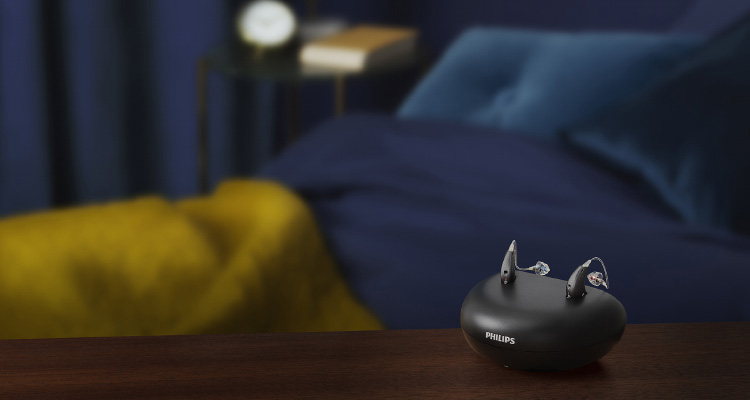 Esse Philips HearLink oferece a conveniência moderna da capacidade de recarga com uma bateria recarregável integrada e um sistema de carga sem contato. Com um curto período de carga, os usuários podem desfrutar de um dia inteiro de energia, incluindo streaming de dispositivos inteligentes.